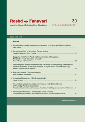 performance measurement system has a critical role in organizations, since the system can demonstrate how much an organization achieves its objectives and specifies the areas that need improvement and consequently managers can make necessary reformation programs to improve their organizational performance. Science and Technology Parks as structures which follow promotion and innovation locally as well as nationally are also deprived of a standardized method to measure their success or failure; a specific and formal performance measurement method that is based on a specific analyzing framework and able to evaluate the performance of Science and Technology Parks. Extracting science and technology parks’ characteristics and the performance measurement systems from literature, we offer a performance measurement framework contained six components including identity and legal structure of Park; main stakeholders’ expectations; expectations from stakeholders; managers’ commitment and proficiency; interactions with universities, research institutions and industries; and finally Park’s real mission and strategies. The latter is the reflection of other components producing performance measures. This framework can be utilized to evaluate the performance of Iran’s as well other Science and Technology Parks outside.