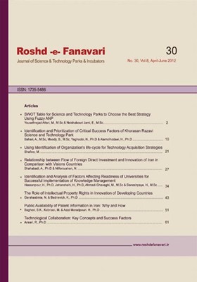 Subject Areas : Science and Technology Parks and IncubatorsArman Bahari 1 , Behnush Mody 2 , Noormohammad Yaughobi 3 , Seyed Hasan Alamolhodaei 4