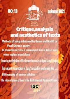 Mirza Mohammad Shafi Shirazi alias Vesal in the thirteenth century AH, a Muslim poet and a devout Shiite, is one of the lovers of the Ahl al-Bayt and one of the poets who in composing his poems on the verses of the Qur'an, narrations, hadiths and religious events and masterfully He has used his religious knowledge in his poetry with a fluent and eloquent nature. In this research, an attempt has been made to show the types of influences from the Quran and Hadith in the Divan of Vesal Shirazi. One of the important aspects of this research is that the methods of reflecting the hadiths and verses of the Qur'an in Wisal Divan have been highlighted and classified among a multitude of praiseworthy and descriptive poems. It also includes showing the reflection of religious beliefs in the court and the application of Quranic verses and hadiths and analyzes their frequency. The frequency of being influenced by the Qur'an and Hadith in Vesal's Divan in terms of poetic format is firstly assigned to his poems and then to his Masnavi, and in Vesal's sonnets, despite the high number, less influence is observed in this format; Also, Vesal has been influenced by the Qur'an and hadiths, who has taken advantage of this whenever he has a suitable opportunity and has done so in various ways; These include a special insistence on borrowing the words of the verses of the Qur'an, comparing them with verses and hadiths, and turning the audience's mind to the verses. The method considered in this research is a library method based on analysis and description of quantitative and qualitative content.