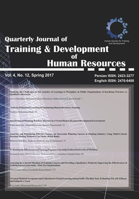 The purpose of this research is to study and prioritize factors which are effective on succession planning success in banking industry. This is an applied and descriptive research. Statistical sample of research is 15 persons including Refah Bank managers and experts. Data gathering was done by Delphi method, asking experts’ opinions. Opinions were gathered by a researcher-made questionnaire including factors affecting the success of succession planning. After that, data were analyzed using Spss and Excel software and also fuzzy TOPSIS method for prioritizing factors, which is one of the multi-criteria decision making methods. Results showed that “support and participation of senior managers” and “justice” are the most important factors in the success of succession planning with the approach of assessment and development center.