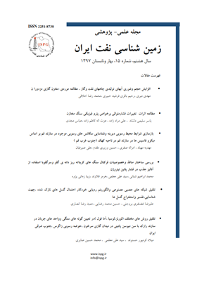 [2] معلمی، س .ع, صالحی . م .ع ،زهدی . ا ، 1395، ژئوشیمی ماسه سنگ های سازند رازک، جنوب خاور حوضه رسوبی زاگرس: کاربرد در تعیین جایگاه زمین ساختی، سنگ مادر و هوازدگی دیرینه، علوم زمین، 286-265.#
